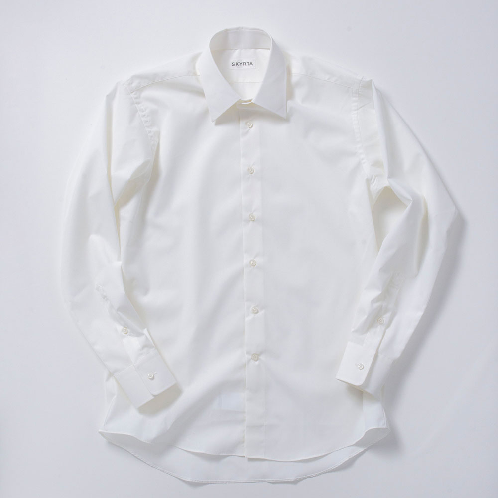 生地原産国:日本¥10,890 スポーツファブリックの技術を応用した高機能素材「Hybrid Sensor®」。SKYRTA定番のこちらの生地は、ポリエステル100%を素材としながら、まるでコットンのようなナチュラルな風合いを実現しました。吸水速乾性に優れ、肌触りはいつもサラサラ。シワになりにくくノーアイロンで着用でき、制菌加工も備えているので泊りがけの出張においても頼れる存在です。 【有料オプション】