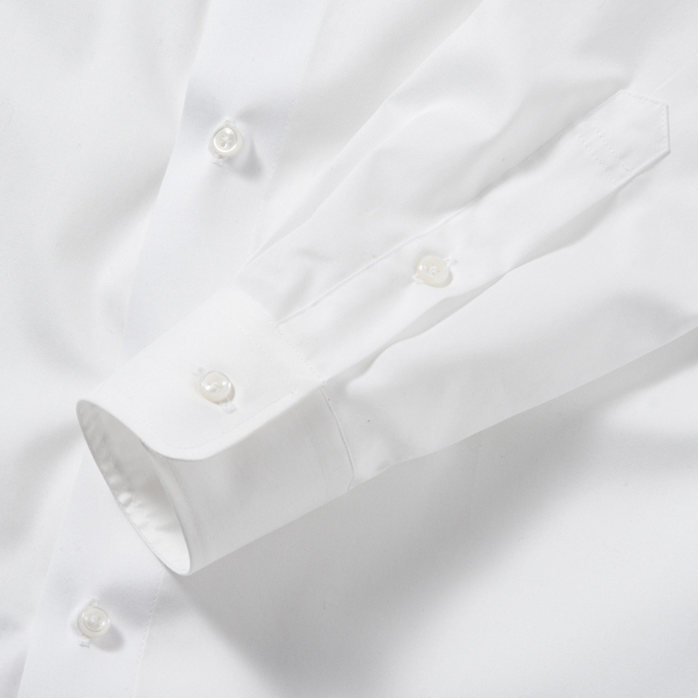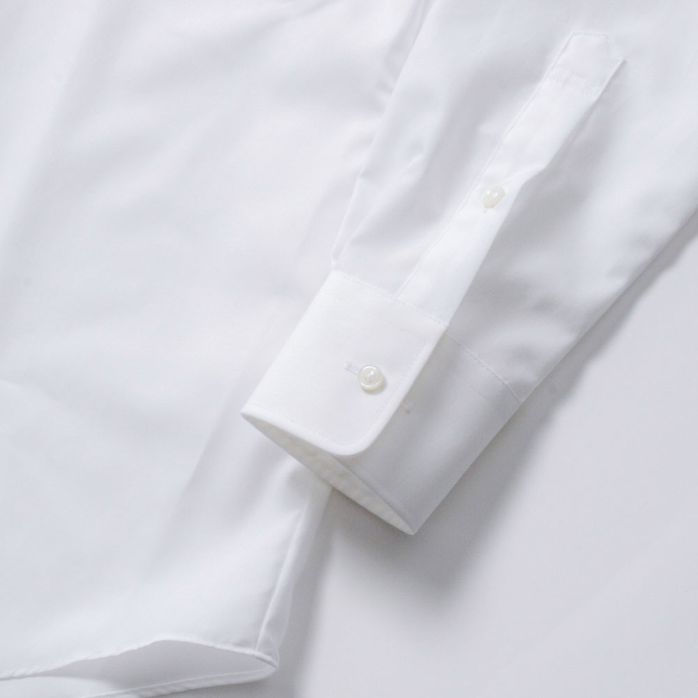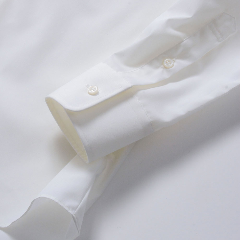 カフス:ダブルスクエア (6cm) [¥1,100] 縫製仕様:袖付:巻伏本縫、脇縫:巻伏本縫 [¥1,100] ボタン:白蝶貝 (貝ボタン/10mm幅3mm厚) [¥1,650]おすすめのパーツは、ご希望に合わせてオーダー内容の確認画面で変更することができます。   【ML03】 120/2 ブロード (ホワイト)