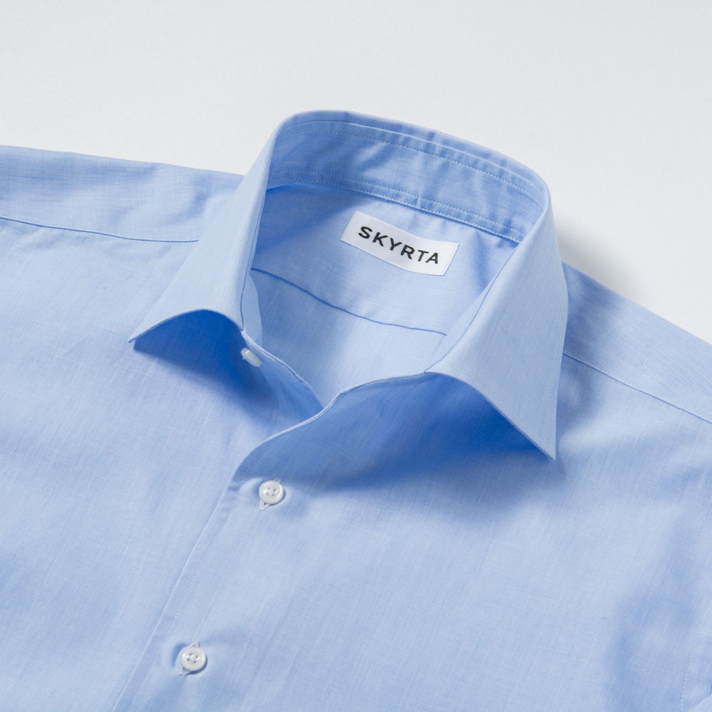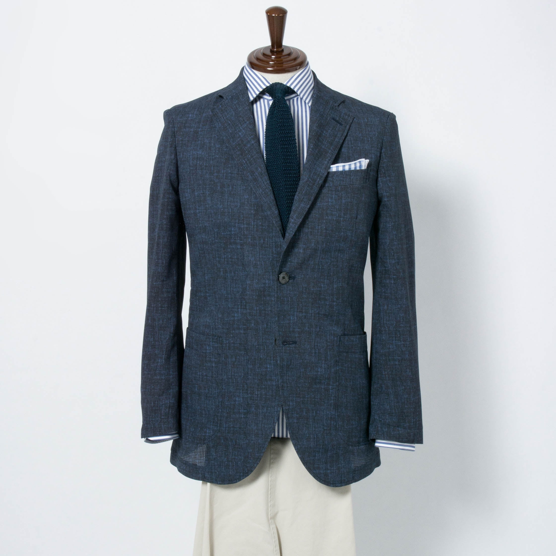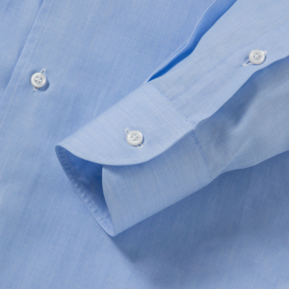 ハーフワンピースワイドイタリア由来のノータイ専用の衿型を、日本のTPOに合わせてモディファイした「ハーフワンピースワイド」。 ボタンを外した際の美しさはもちろんのこと、タイドアップスタイルにも対応できるのは嬉しいポイント。 スマートでエレガントな「大丸 (7cm)」のカフスも、芯地を柔らかくしたことで、どこかこなれた印象に。 こういう微差を楽しむ仕様なら、生地は表情があるものと組み合わせたい。 商品ラインナップ   【2U55】 エンドオンエンド (サックス)