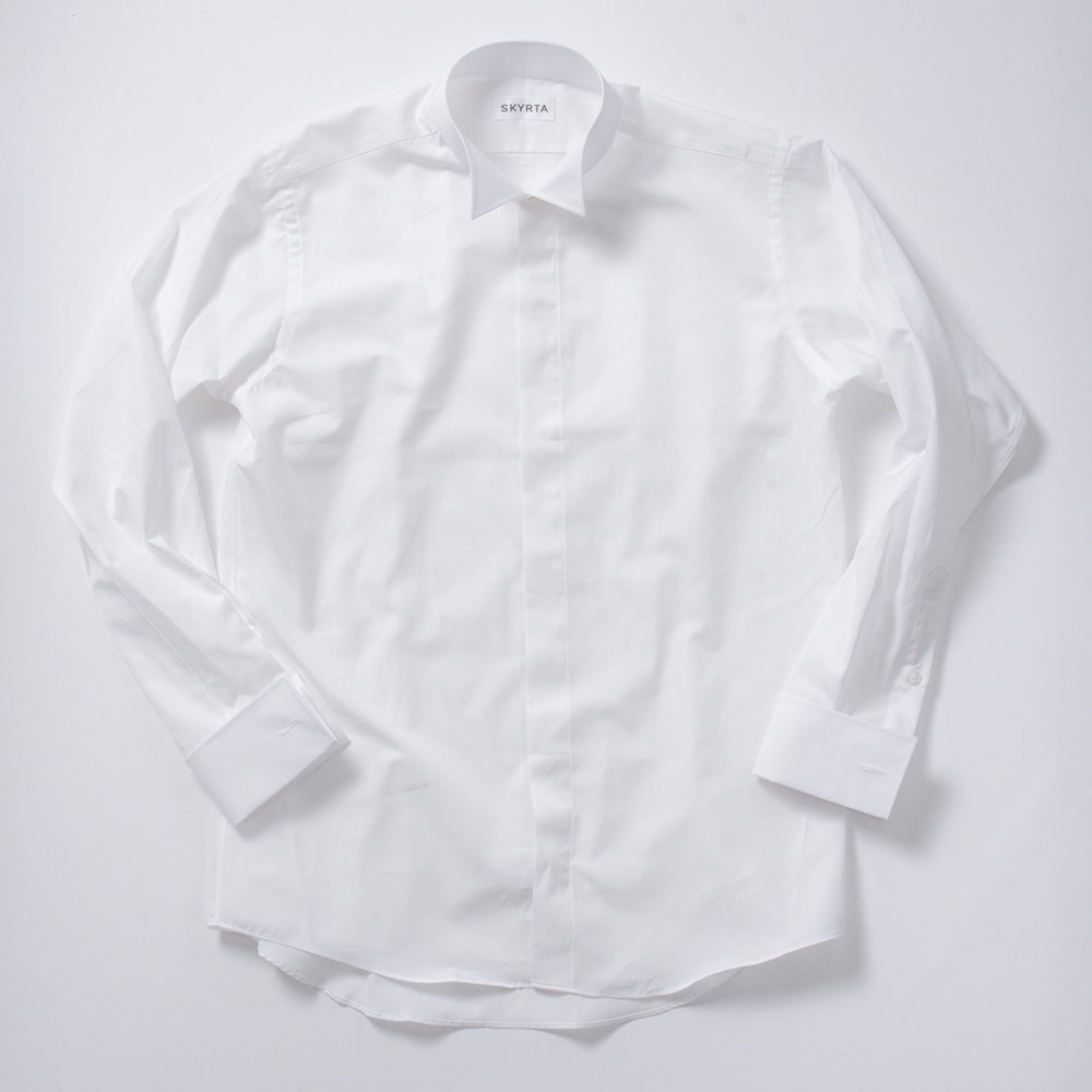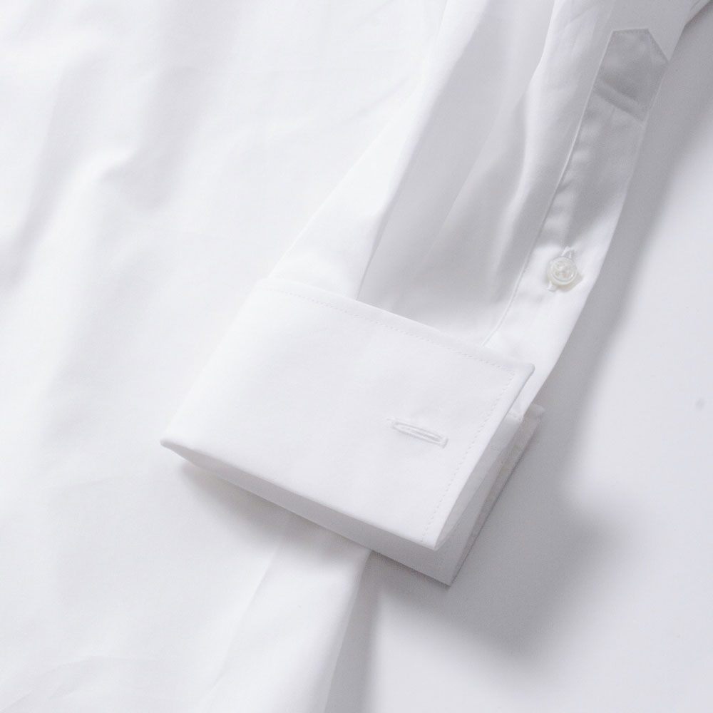 ウィングカラーフォーマルシャツの代表格であるウイングカラーは、パーティーシーンなどにおいても華やかな印象を演出するのに最適です。またダブルカフスが、より一層装いを引き立たせます。。 ドレスコードのあるフォーマルシーンでは白無地のコットンブロード生地であることが必須条件ですが、カジュアルなパーティーにおいては好みの色柄や素材を楽しむのも良いでしょう。 商品ラインナップ   【2U66】 100/2 ブロード (ホワイト)