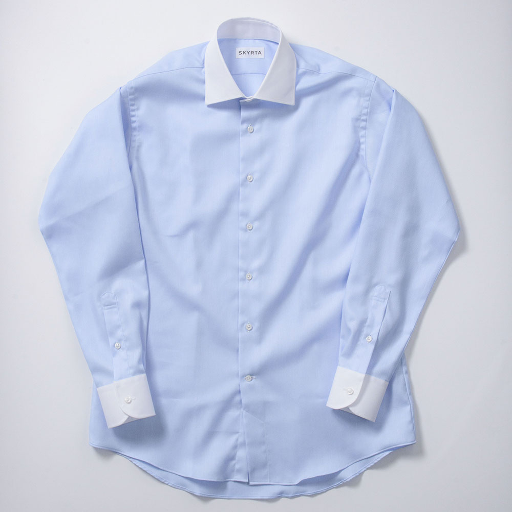 コントラストカラー:衿のみ [¥550]おすすめのパーツは、ご希望に合わせてオーダー内容の確認画面で変更することができます。   【MT53】 100/2 ツイル (サックス)
