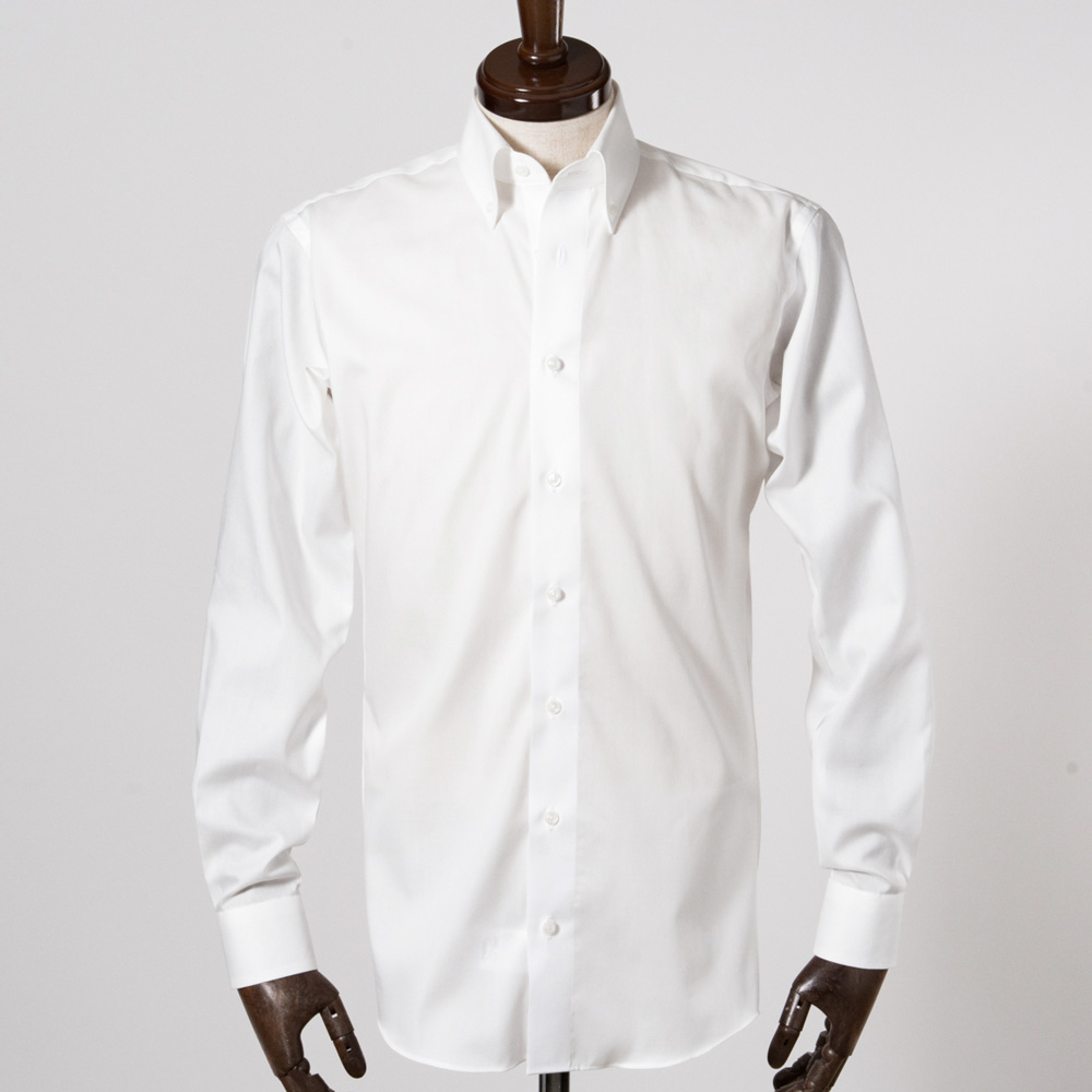 プレミアムスタイル上質なシャツの基本となる生地にこだわり、ボタンには「白蝶貝」をあしらい、 縫製仕様に「袖付:巻伏本縫、脇縫:巻伏本縫」、運針に「選択あり(19~21針)」を選択。 こだわり仕様として人気のある裾の「テールドボトム(ガセット付き)」も選択。 単なる仕事着としてではなく、ワンランク上の風格をお楽しみください。 商品ラインナップ   【2U05】 ドビーツイル (ホワイト)