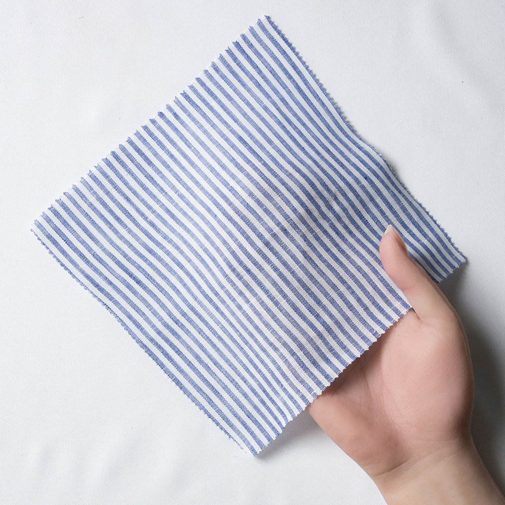 【2R10】 リネン 平織り ブロックストライプ (ホワイト×ネイビー)