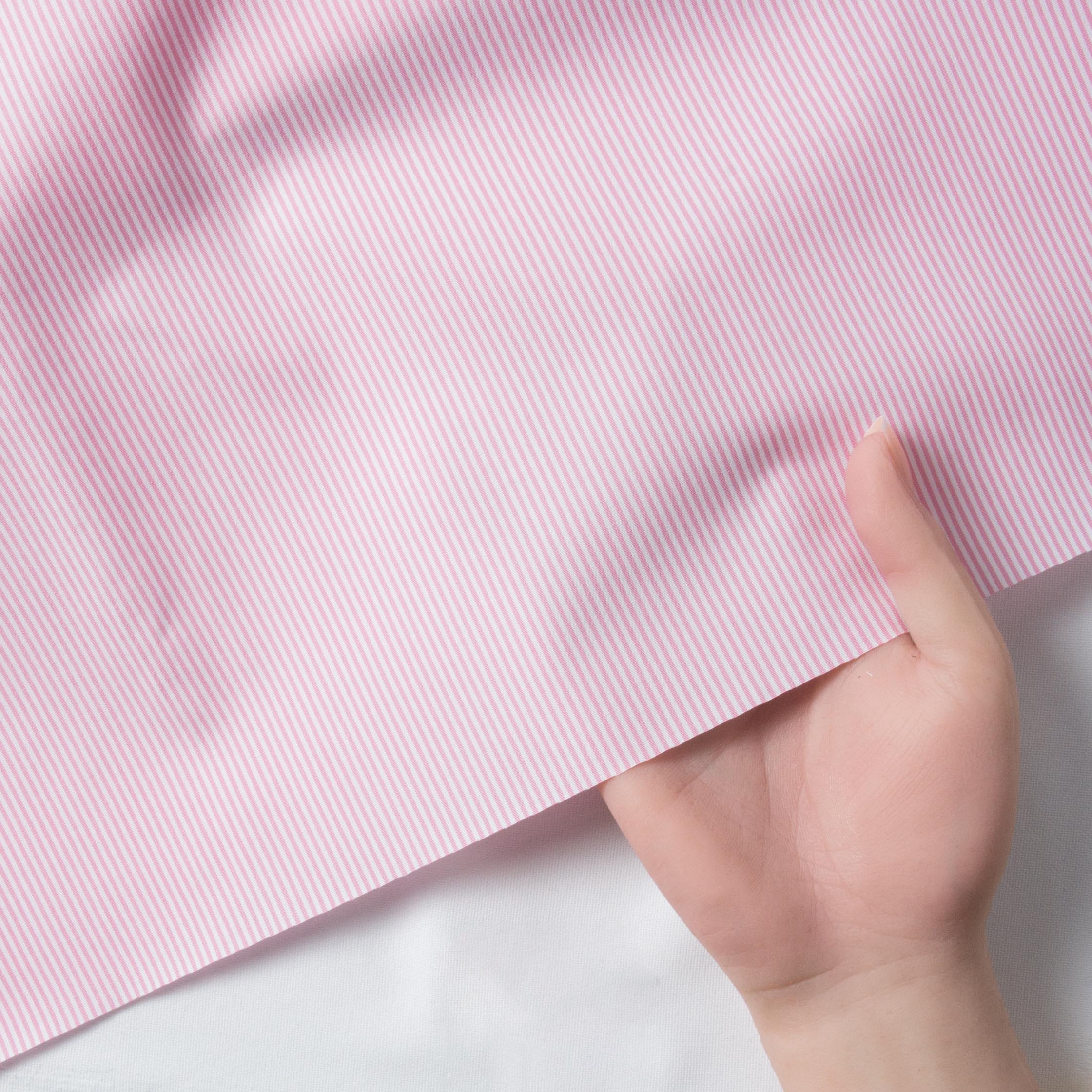 【2W94】 100/2 ブロード ブロックストライプ (ホワイト×ピンク)